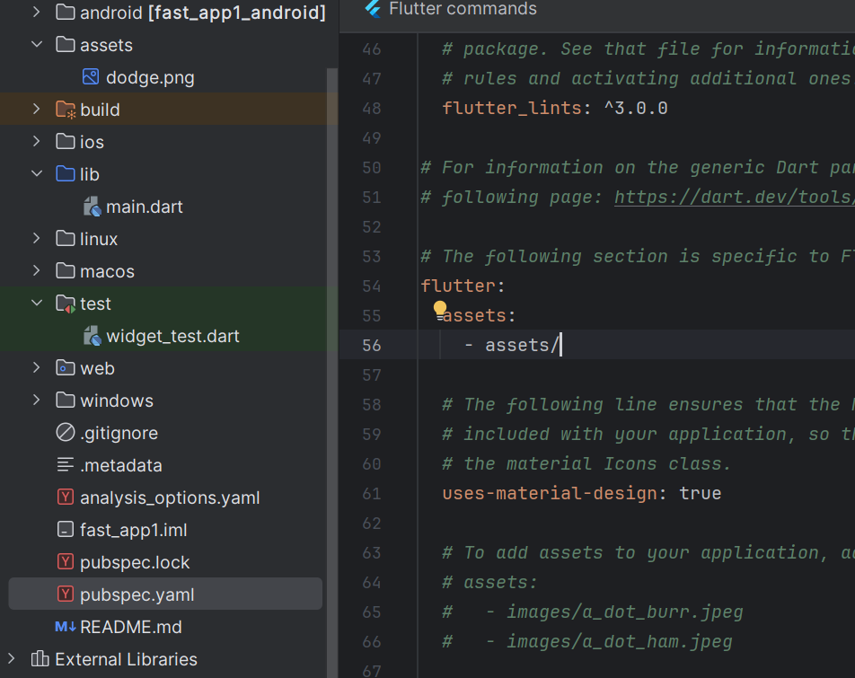 assets란 폴더를 만들고 그 아래에 있는 모든 사진을 사용하겠다는 뜻이다.