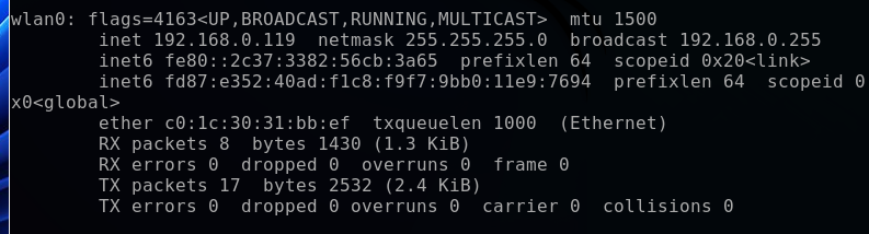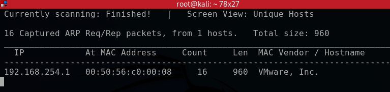 이건 netdiscover로 같은 서브넷의 있는 모든 연결된 기기들을 보여주는 것이다.