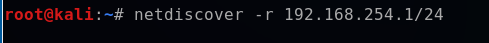 이제 위에서 한것처럼 netdiscover -r 192.168.0.1/24 를 입력하자
