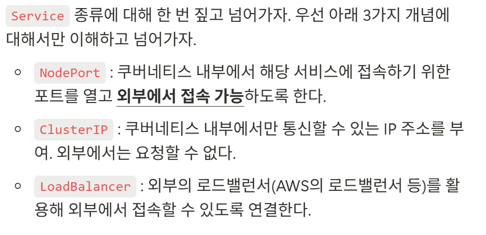 실제 서비스에서 파드(Pod)에 요청을 보낼 때, 포트 포워딩(port-forward)이나 파드 내로 직접 접근(kubectl exec …)해서 요청을 보내진 않는다. 서비스(Service)를 통해 요청을 보내는 게 일반적이다.