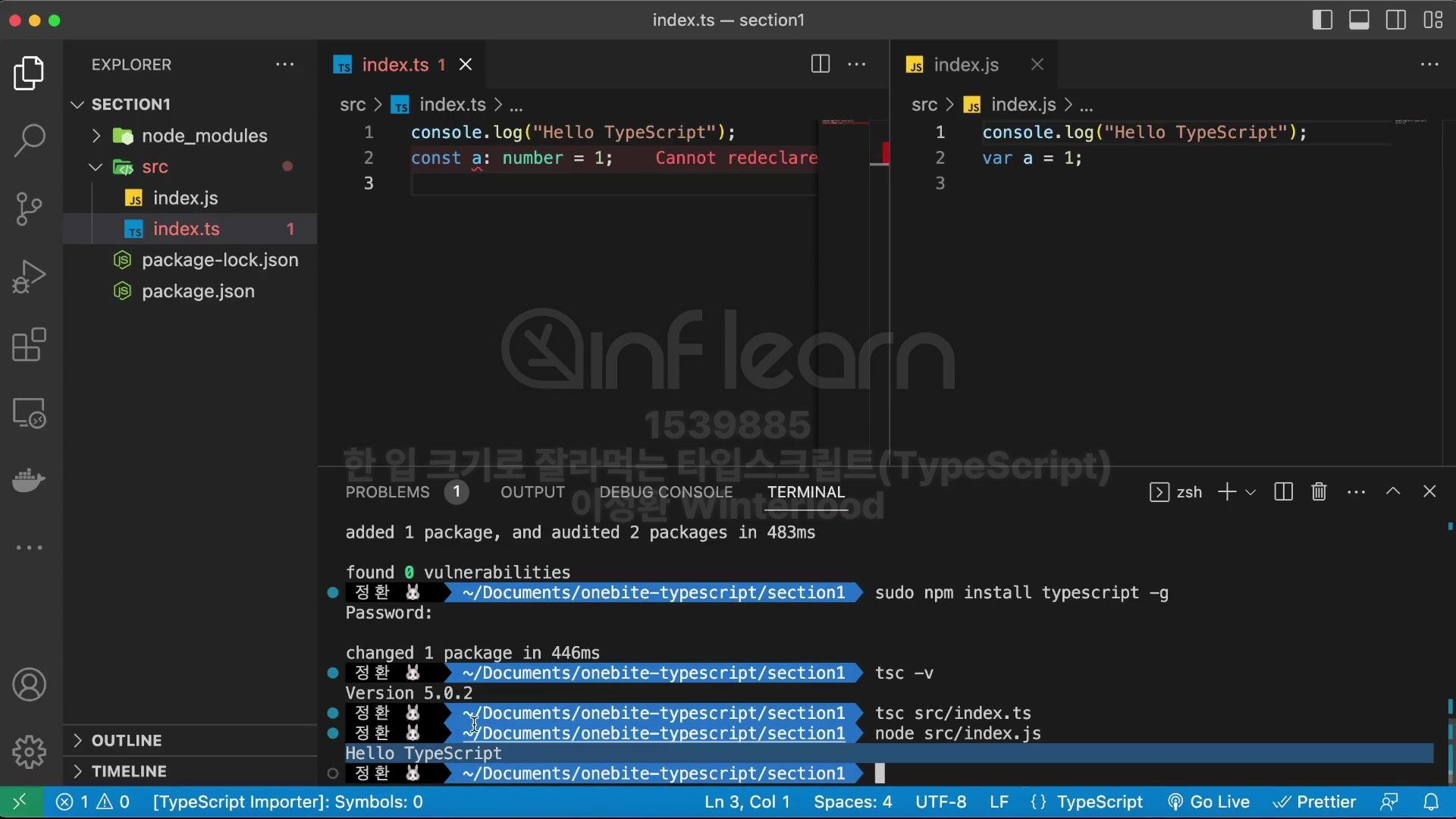 tsc src/index.ts로 컴파일하면 index.ts에서 index.js 파일이 생긴다