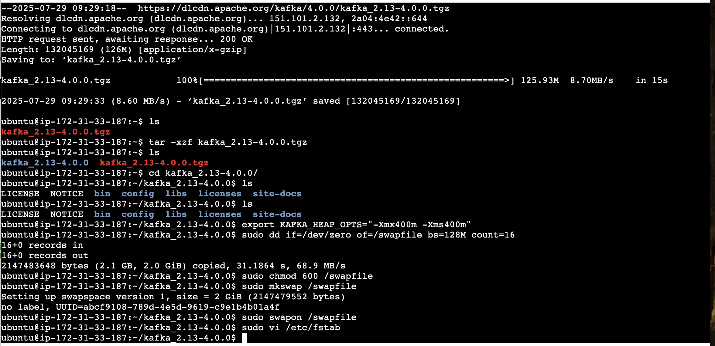 $ wget https://dlcdn.apache.org/kafka/4.0.0/kafka_2.13-4.0.0.tgz