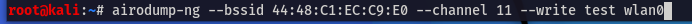 채널 11을 가지고 bssid가 44:48...dls 인 네트워크에서만 스니핑을 한다는 것을 뜻