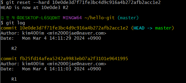 R2가 최신 커밋이 된다.